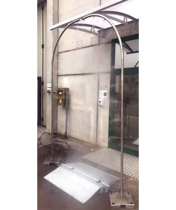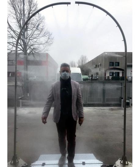 | ADI es un sistema para la higienización de las personas a la entrada y salida de zonas sensibles al Coronavirus. Cuando la persona pasa, el sistema se pone automáticamente en servicio. Toda la persona que pasa entre los dos semi arcos es interesada en la nebulización, desde los pies hasta la cabeza, sin mojarse. Las micro gotas de 10 micrón entran en los poros de la roba de la persona que pasa, favoreciendo la eliminación de los Coronavirus presentes. |