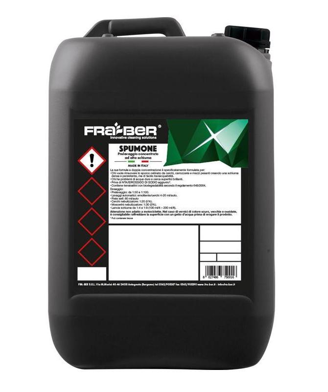 Prelavado concentrado de alta espuma para exteriores de automóviles, camiones y vehículos industriales. Efecto desengrasante muy rápido, elimina fácilmente la suciedad y la grasa más persistente. Compatible con las ceras.
