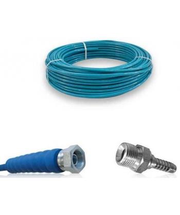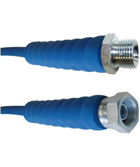 | Manguera termoplástica de alta presión con racores y limitadores de curvatura: AZUL250bar, R7 5/16 "- DN8, Conectores 3/8 HI x 1/4 HE |